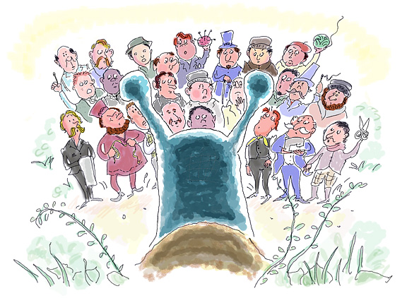 I had a great time trying to interpret (both in art and looking for the meaning of) some fairly obscure Mother Goose rhymes. This one is called “The Tailors and the Snail” and it goes: