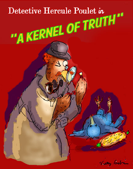 Our bird-brained detective is hot on the trail of a corny killer! Poulet has uncovered a key clue–a kernel left behind by the son-of-a-gull who cob-clobbered the Bluebird of Happiness!