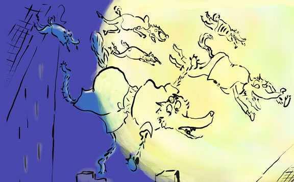 A pig (Dr. Knuckle) becomes a wolf (Mr. Hide).